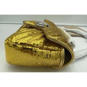 NEW! GUCCI MARMONT METALLIC SEQUIN GOLD GG CROSSBODY BAG PURSE AUTHENTIC