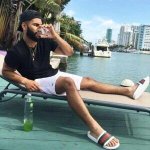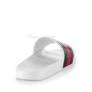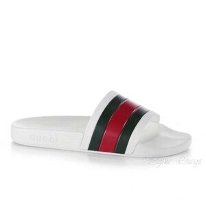 NEW GUCCI Men's WEB Pursuit Pool / Beach White Rubber Slides G 9 / US 9.5