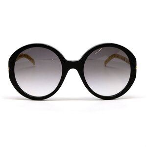 NEW GUCCI ROUND SUNGLASSES GUCCI GG0726S 001 BLACK GREY EYEWEAR WITH GOLD CHAIN