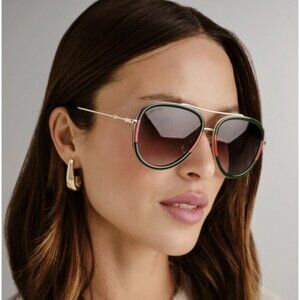 NEW GUCCI SUNGLASSES GG0062S 003 GOLD/GREEN UNISEX AVIATOR EYEWEAR