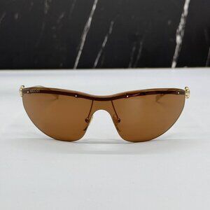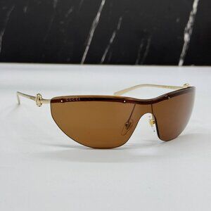 NEW GUCCI WOMEN SHIELD GG1700S 004 SUNGLASSES GOLD BROWN GUCCI EYEWEAR