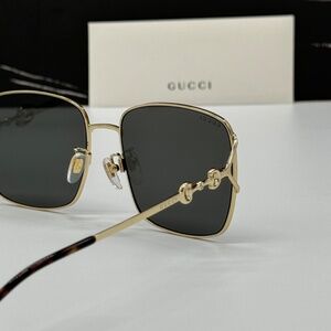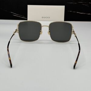 NEW GUCCI WOMEN SQUARE METAL AUTHENTIC GUCCI SUNGLASSES GOLD GRAY GUCCI EYEWEAR
