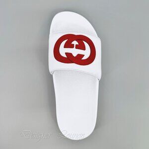 NEW GUCCI Women's Interlocking GG White Leather Slides Flip Flops EU 38 US 8