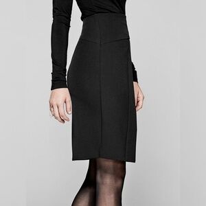 A perfectly polished skirt featuring a short length panel in the front with a slit and side zipper closure. Lined.