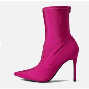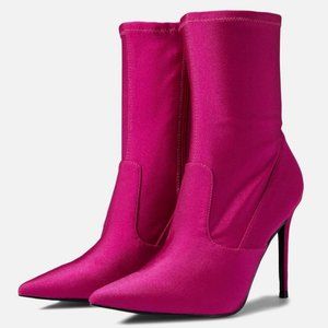 NEW GUESS Frita Ankle Boot Satin Fabric Fuchsia / Pink