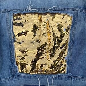 NEW GUESS Hayley Racer-Stripe Denim Jacket SZ S