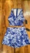 NEW GUESS JONI 2 Piece Set Halter Top and high Waist Floral Shorts Blue M / L