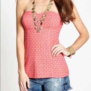NEW GUESS Kate Eyelet Corset - bright coral multi