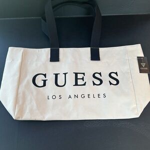 NEW GUESS Women's Canvas Of--White Large Tote Shopper Handbag Beach Travel