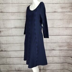NEW Gabby Skye Size L Fit & Flare Knit Sweater Dress Navy Blue Geo Print $90