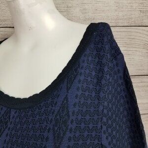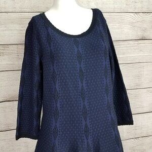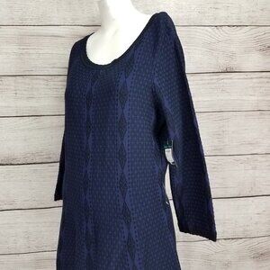 Gabby Skye L Fit & Flare Knit Sweater Dress Navy Blue Black Geo Print NWT $90