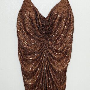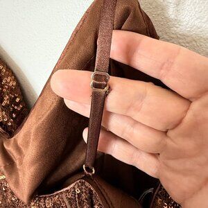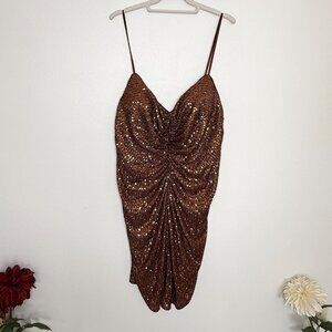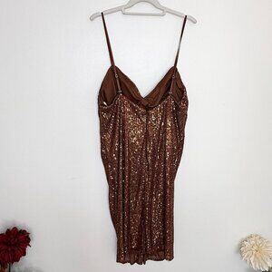 NEW Galina Signature Brown Sequin Beaded Strappy Glam Cocktail Dress Sz 22