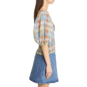 NEW Ganni Seersucker Check Smocked Top