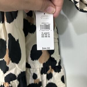 Tiered dress with an animal print in the shape of flowers. Size is 5T, new with tags.