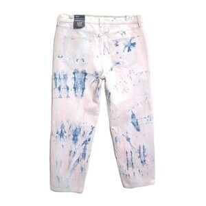 NEW Gap Cheeky Straight High Rise Tie Dye Jeans Sz 33 Button Fly Pink Blue White