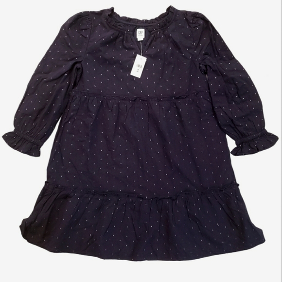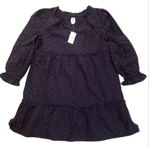 Gap Kids casual dress. Dark navy blue with silver metallic small dots. Lined. Long sleeves. Pull-on style.