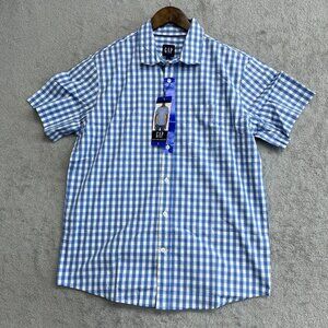 NEW Gap Men's Size L Short Sleeve Blue Plaid Button up Shirt