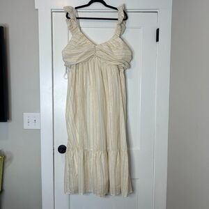 New with Tags! Gap Ruched Tiered Yellow and Gold Striped Midi Dress in Size XXL.