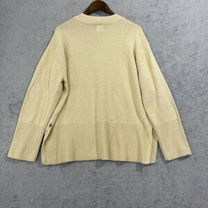 NEW Gap Womens L Beige Cotton Long-Sleeve Sweater With Ribbed Hem & Side slit