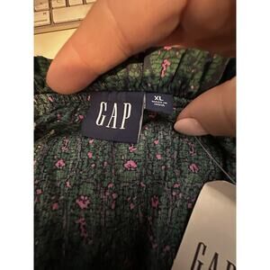 NEW Gap XL Women Peasant Smocked Waist Dress Floral Print Cotton Q11