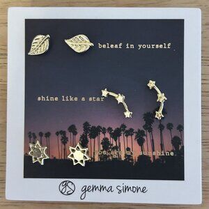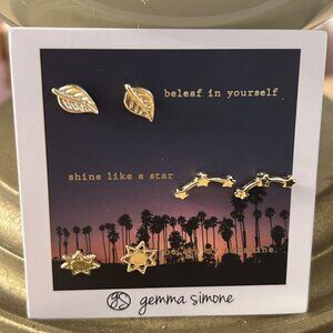 NEW Gemma Simone 14kt Gold Plated Celestial Stud Earrings Summer Set of 3