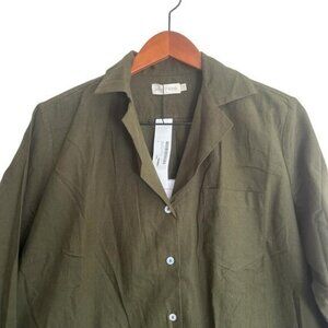 NEW General Sleep Sz Large Pajama Top Khaki Green Organic Cotton Soft Flannel
