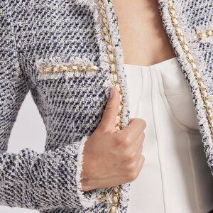Transform into the most glam boss in the Serena. With classic tweed elevated by luxe leather chain trim, this jacket is the perfect mix of modern and timeless style. You'll be best dressed at happy hour when you pair this layer with a crisp button-up and trousers. Generation Love’s tweed is crafted with recycled fabric.