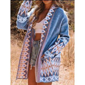 NEW Geo Pattern Drop Shoulder Open Front Cardigan Sweater S