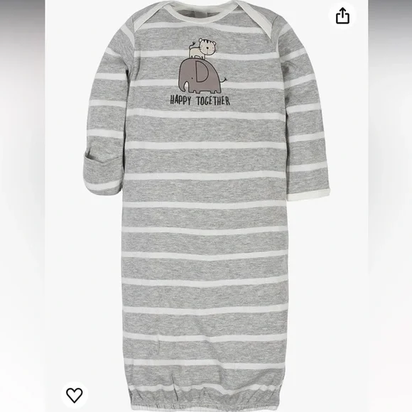 NEW. Never worn. Gerber size 0-6 months. Has elastic at the hem. Sleeves roll over hands for mittens. Received several of this sleeper.