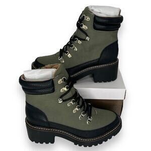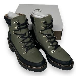 NEW Giani Bernini Sage Green Chunky Moto Biker Boot Size 5.5 Lace Up Booties NWT