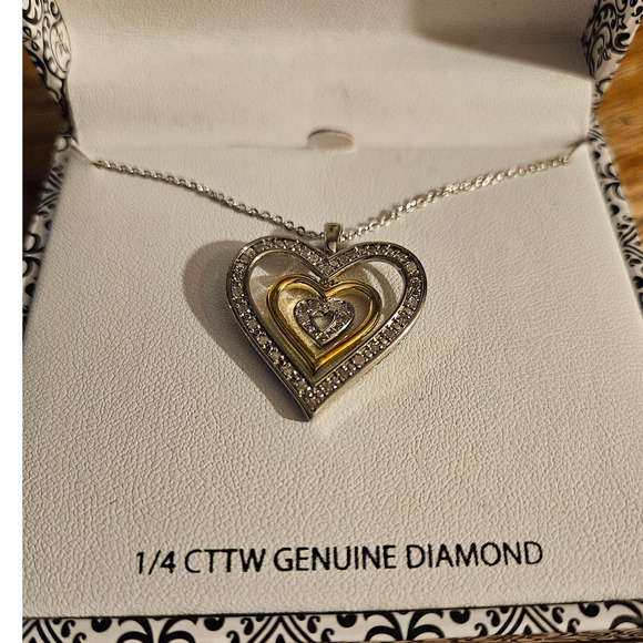 Gianni Argento Two-Tone 1/4ct. Genuine Diamond Heart Pendant Necklace.