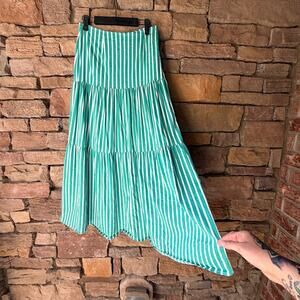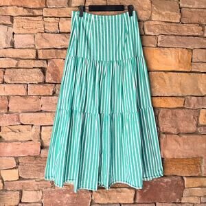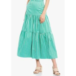 NEW Gianni Bini 2 Helen Tiered Ruffle Striped Green A-Line Housewife Maxi Skirt