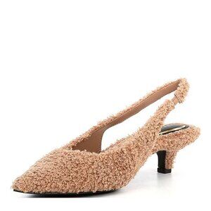 NEW Gianni Bini Britnie Faux Shearling Kitten Heel Slingback Pumps in Lucy Tan