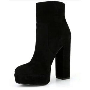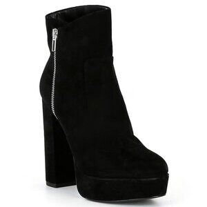 NEW Gianni Bini Didier Suede Side Zipper Platform Block Heel Booties in Black