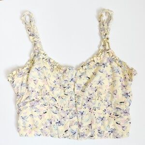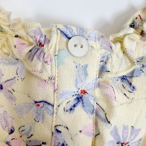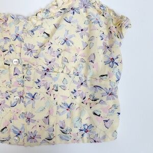 NEW Gianni Bini Floral Pastel Yellow Ruffle Neckline Chiffon Cropped Top Medium