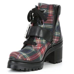 Gianni Bini GB Pop-Star Plaid Rhinestone Buckle Lug Sole Boots