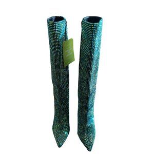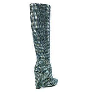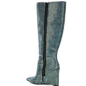 NEW Gianni Bini GaborTwo Wide Calf Multi Rhinestone Pointed Toe Tall Wedge Boots
