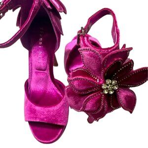 NEW Gianni Bini Karmello Velvet Flower Ankle Strap Platform Dress Sandals