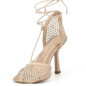 NEW Gianni Bini Reagan Mesh And Leather Ankle Wrap Square Toe Pumps