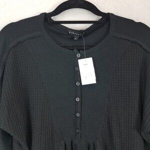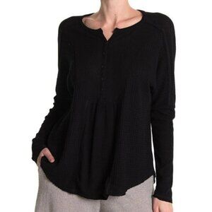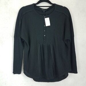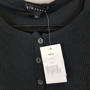 NEW Gibson Look Nordstom XS Crew Neck Mixed Waffle Knit Top in Black NWT