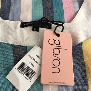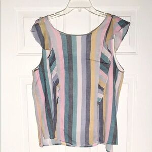 NEW Gibson Tank Top Motherchic Ruffle Stripe Blouse Sleeveless Size XL