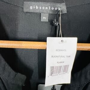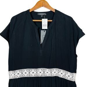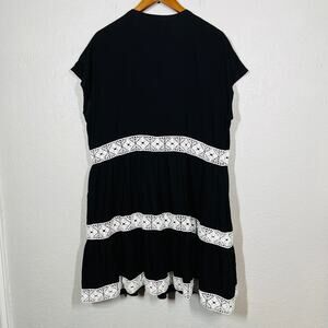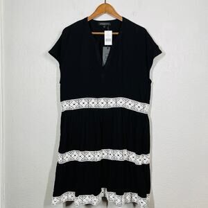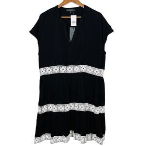 NEW! Gibsonlook Tiered Dress V Neck Short Sleeve Casual Black White - XL