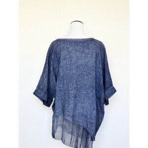 NEW! Gigi Moda Italy 100% Linen Tunic Blouse Asymmetric Hem Lightweight Blue
