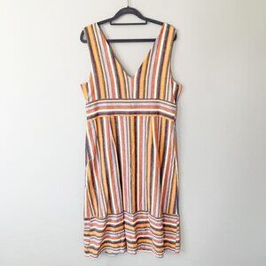 NEW Gilli linen blend bold striped dual v-neck sleeveless fitted lined dress