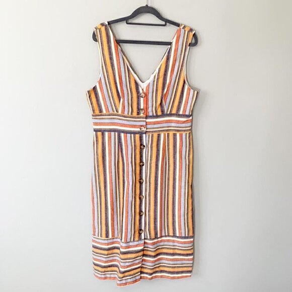 NEW Gilli linen blend bold striped dual v-neck sleeveless fitted lined dress
