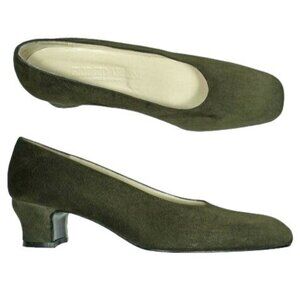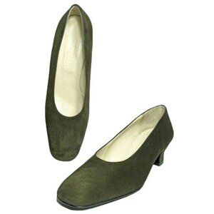 NEW Giorgio Armani Womens 9M Italian Dark Green Suede Leather Dress Shoe Heel