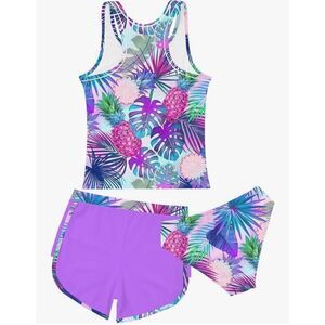 NEW Girls 3 Pc Bathing Suit UPF 50+ Swimsuit Shorts Tankini 14/15 Yrs