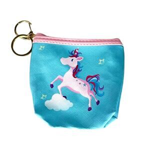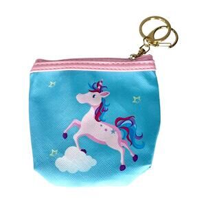 NEW Girls COIN PURSE KEYCHAIN Key Ring Unicorn Sky Clouds Blue Zip Bag Pouch
