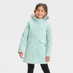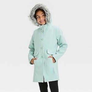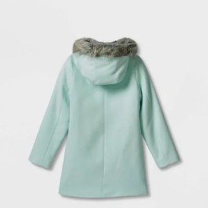 NEW! Girls' Faux Wool Jacket with Hood, Mint Green/Blue