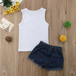 Set includes tank top and denim shorts